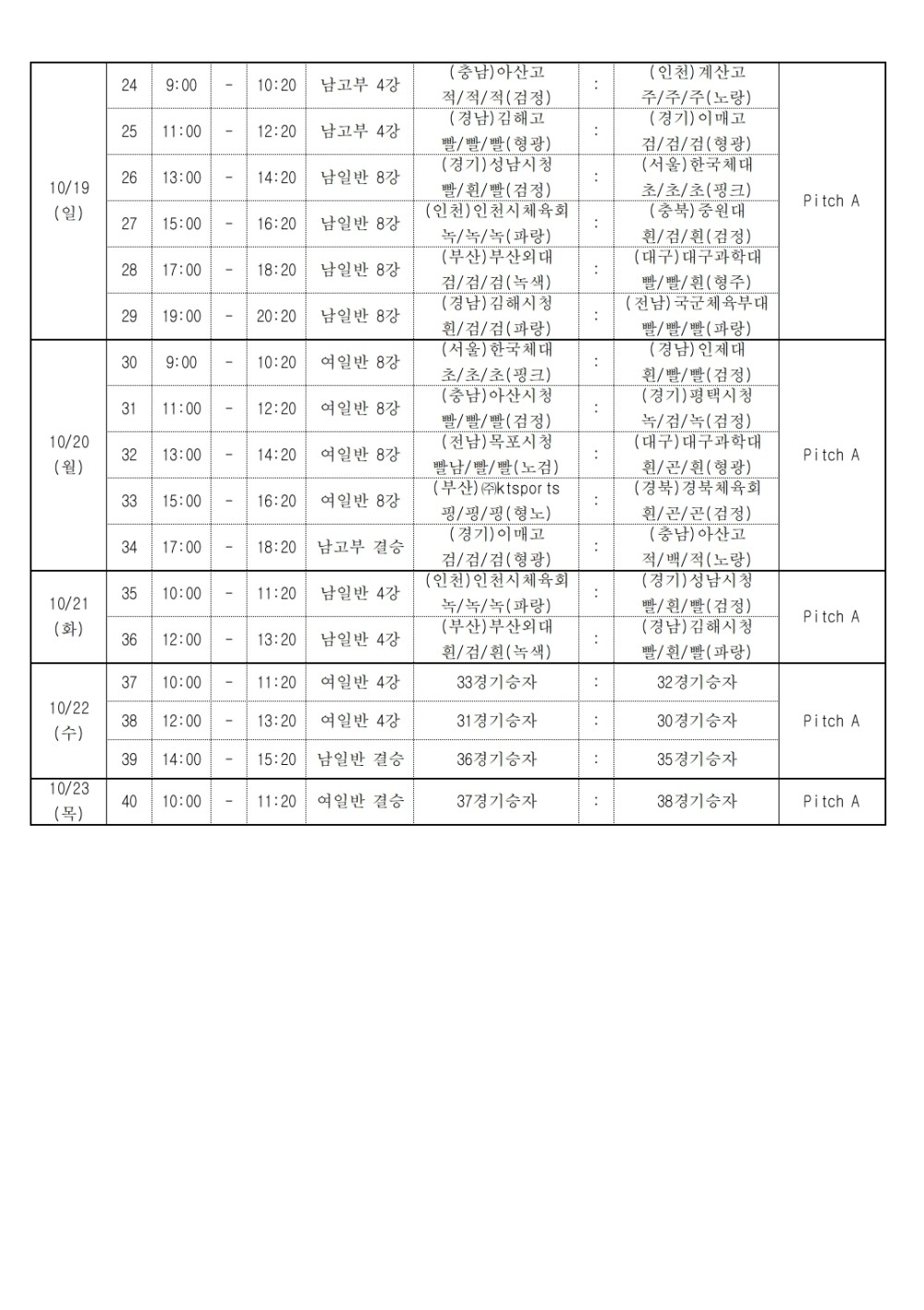 제106회 전국체육대회 유니폼배정표(10.21.) 페이지 정보 작성자 하키협회 댓글 0건 조회 364회 작성일 25-10-14 본문 제106회 전국체육대회 유니폼배정표를 붙임과 같이 알려드립니다. 붙임: 제106회 전국체육대회 유니폼배정표 1부. 끝. 목록 이전글 제106회 전국체육대회 심판배정표(10.15.) 수정 다음글 제106회 전국체육대회 장비검사 일정 이전글제106회 전국체육대회 심판배정표(10.15.) 수정 25.10.14 다음글제106회 전국체육대회 장비검사 일정 25.10.14