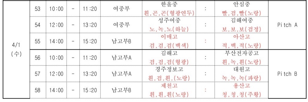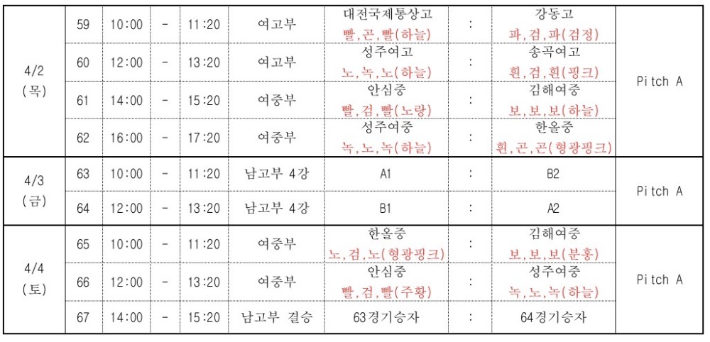 2026 전국춘계남녀하키대회 유니폼 배정표 (4.1.- 4.)