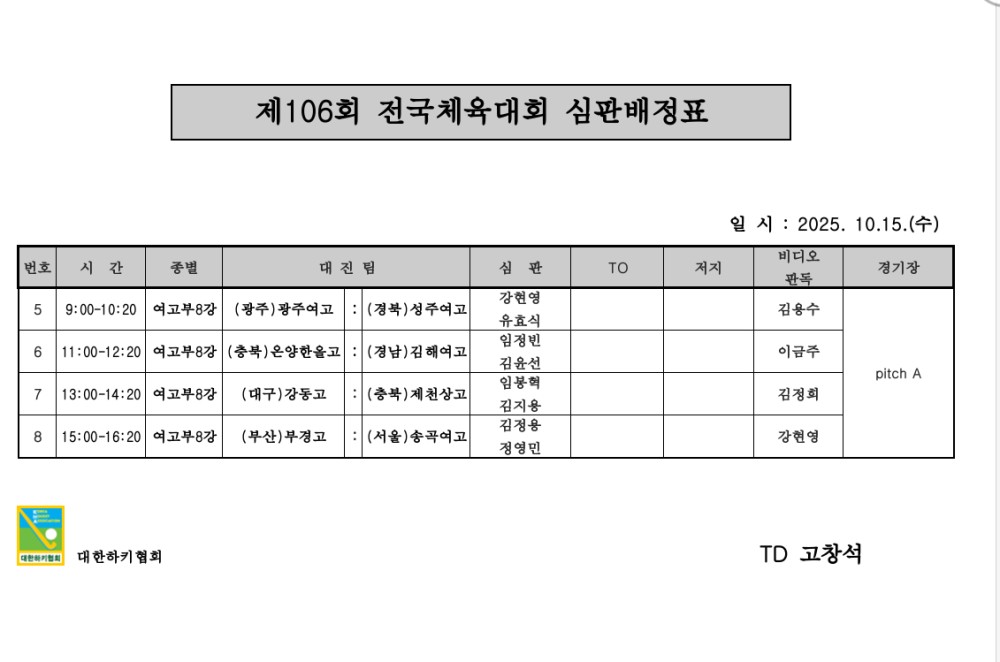 - 다음글제106회 전국체육대회 유니폼배정표(10.23.) 25.10.14