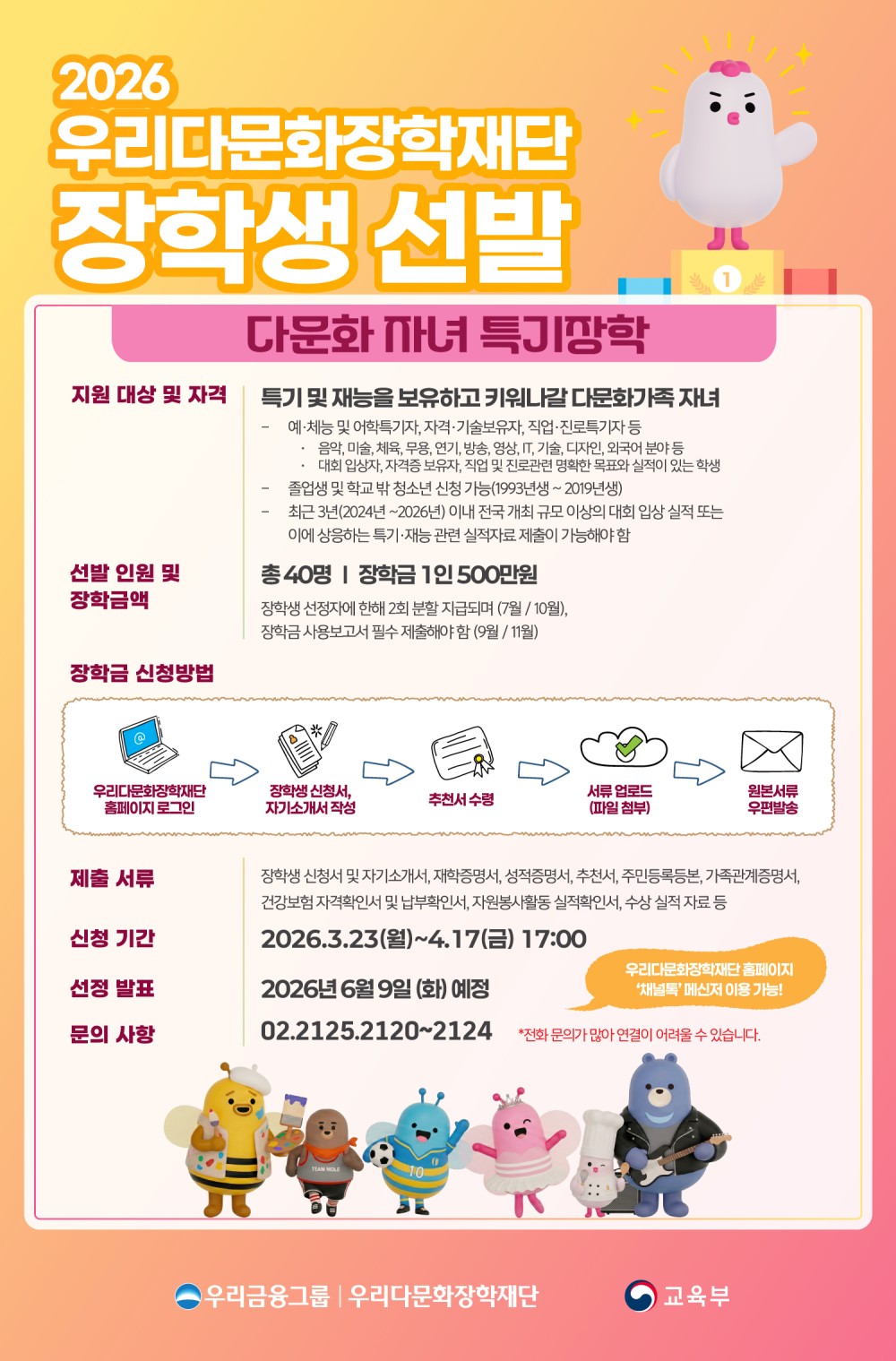 . 관련문의: 우리다문화장학재단 사무국(02-2125-2120)